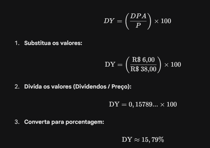 O cálculo do Dividend Yield é direto e usa dois componentes principais: